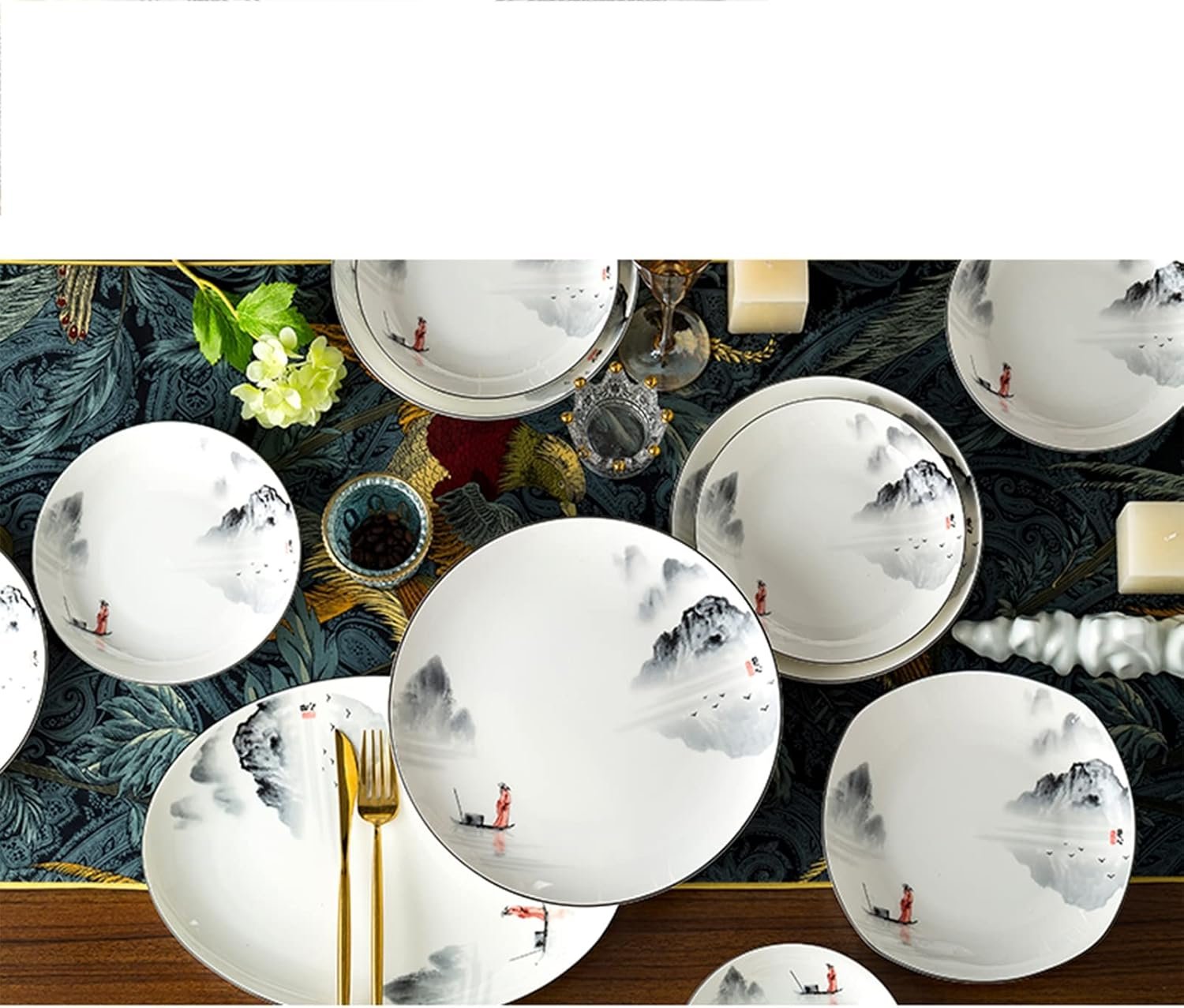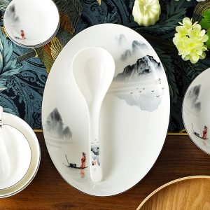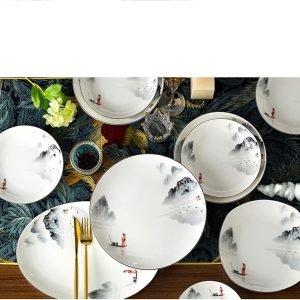 As we all know, China is one of the four ancient civilizations. China has a history of more than 5,000 years. Ink painting is a traditional Chinese painting. This set of dinnerware is designed with ink painting, drawing the great rivers and mountains of China on the surface of the tableware, as if you are in poetry and picturesque in ancient China !