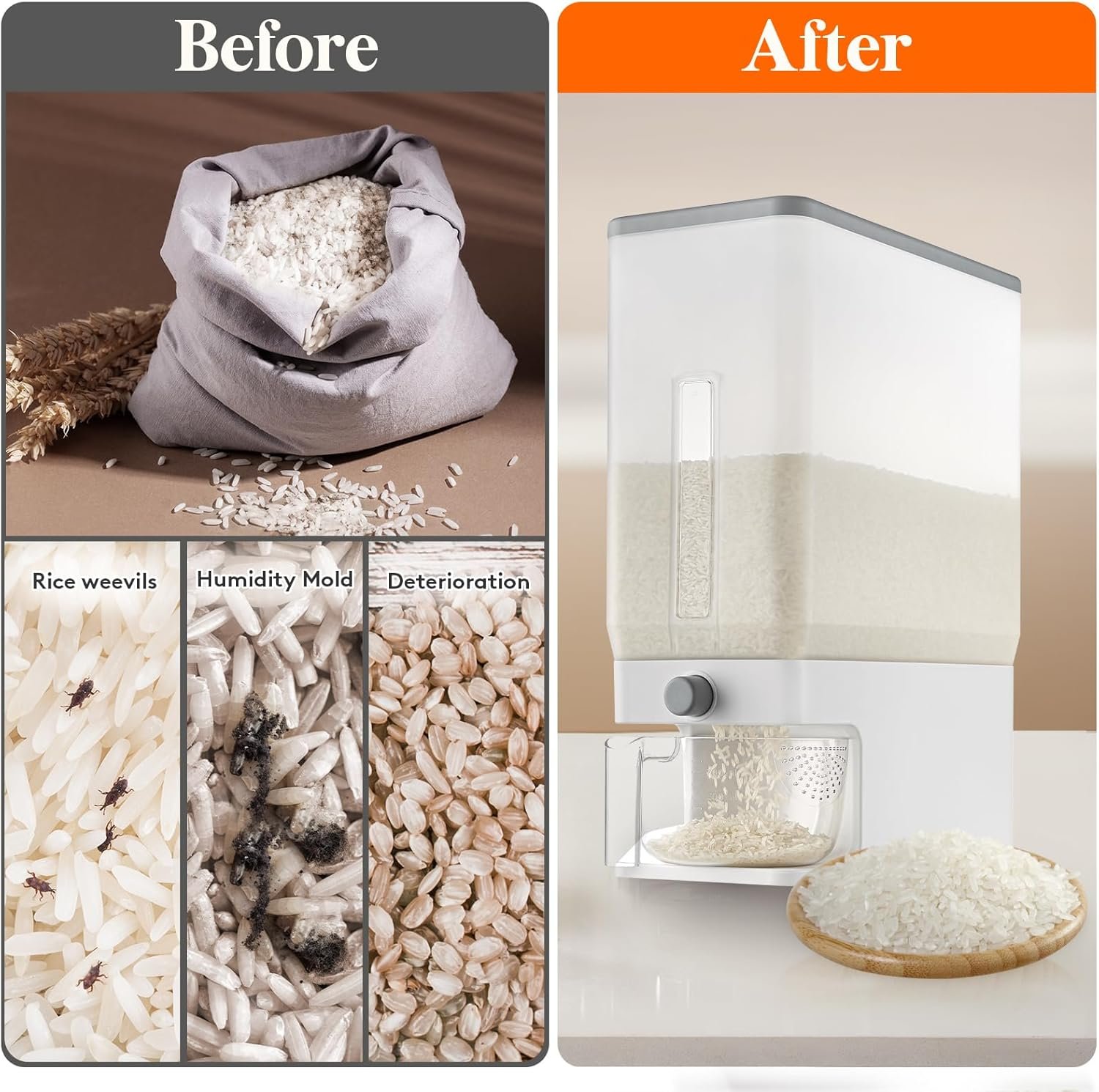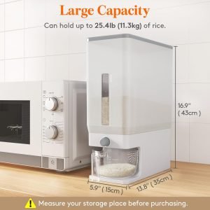 Anniversary Celebration While Stocks Last Just $ 69:Lifewit Rice Dispenser 25 Lbs(11.3kg), Rice Storage Container Sealed Moisture Proof with Measuring Cup for Kitchen Pantry Household, BPA-Free