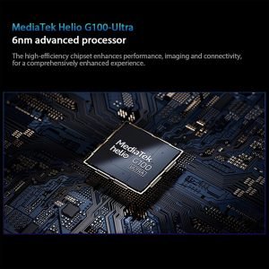 - Helio G100-Ultra6nm manufacturing processCPU: Octa-core processor, up to 2.2GHzGPU: Mali-G57 MC2